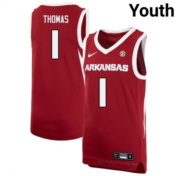 Arkansas Razorbacks Meleek Thomas #1 Cardinal Jersey | Youth Basketball Premium Stitch Edition 10340870