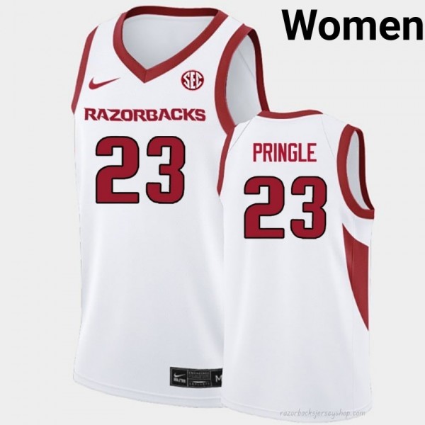 Nick Pringle #23 Razorbacks White Authentic Women's Basketball University Jersey | Hog Wild Premium Gear 82189236